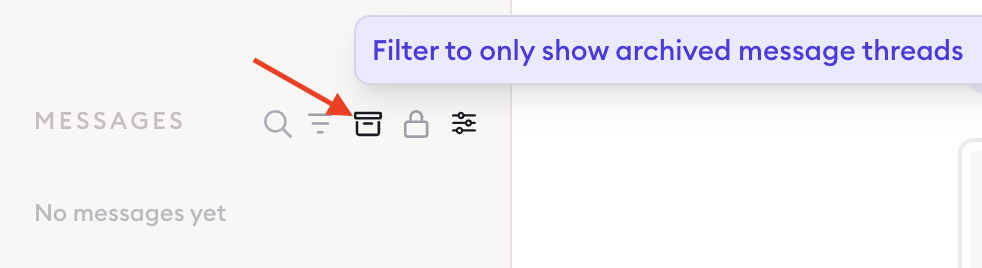In the Messages sidebar, click the archived icon to filter archived threads within conversations.